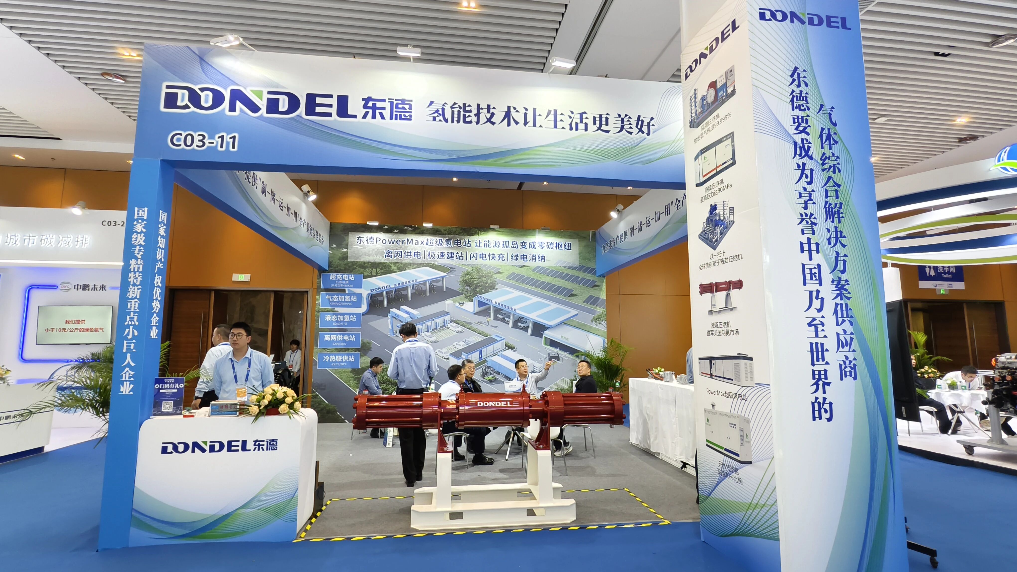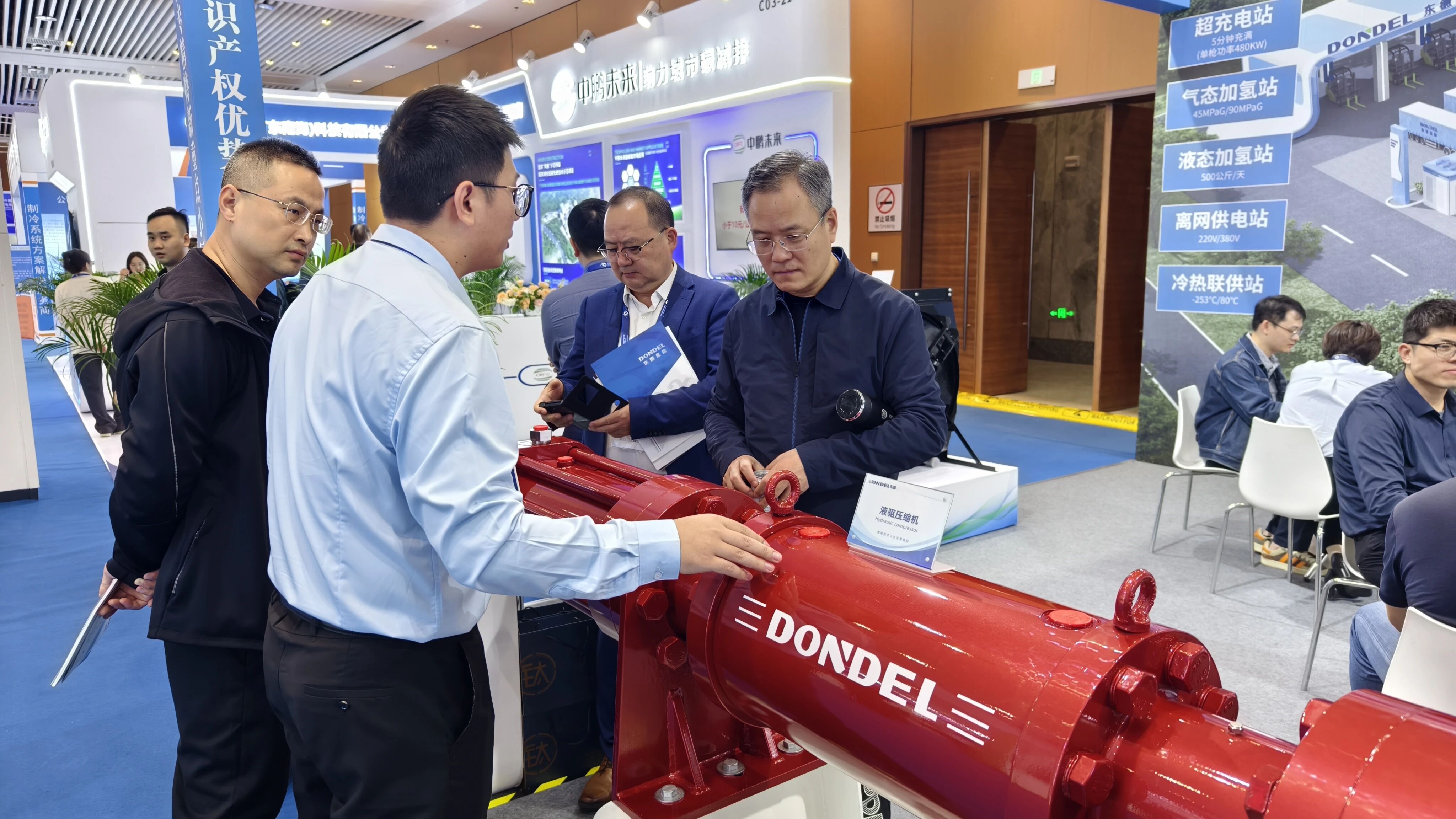 展会期间,东德展台人流如织,吸引了众多氢能运营商、车企、能源企业及科研机构代表驻足交流。各方围绕设备性能优化、场景化定制方案、国际合作等议题展开深度探讨。基于在压缩机领域的深厚积累,东德已形成覆盖“制、储、运、加、用”全链的多元解决方案,并成功应用于海南最大综合能源补给站、贵州六盘水氢能站、临沂焦炉气制氢等数十个国家级、省级示范项目,为钢铁、港口、交通等领域的绿色转型提供坚实支撑。