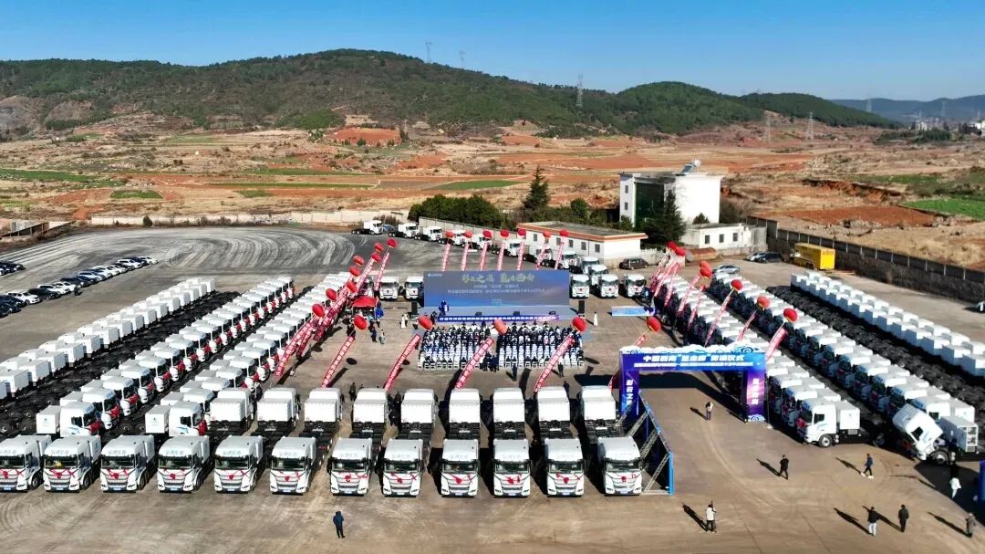 1月16日,中国西南“氢走廊”贯通仪式暨氢通富源风光制加氢一体化项目300辆氢能重卡发车运营仪式在富源举行。