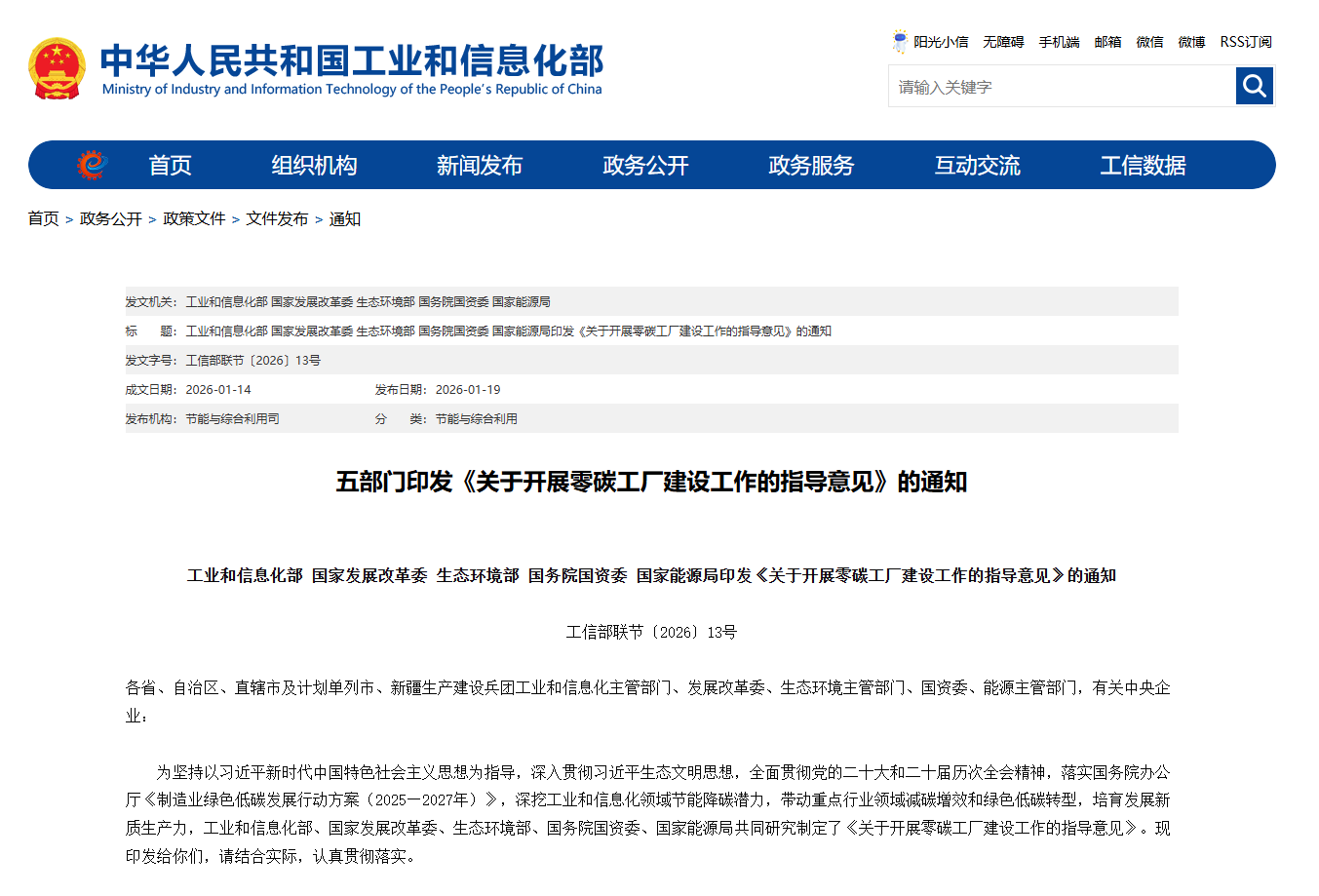 1月19日,工业和信息化部、国家发展改革委、生态环境部、国务院国资委、国家能源局联合发布《关于开展零碳工厂建设工作的指导意见》(工信部联节〔2026〕13 号),带动重点行业领域减碳增效和绿色低碳转型,明确零碳工厂建设总体方向,将氢能等清洁能源的应用作为源头减碳的建设路径。