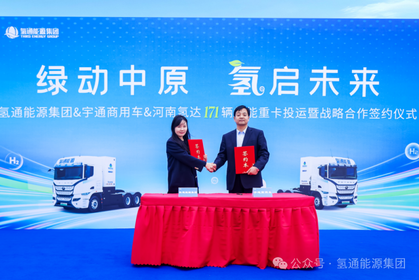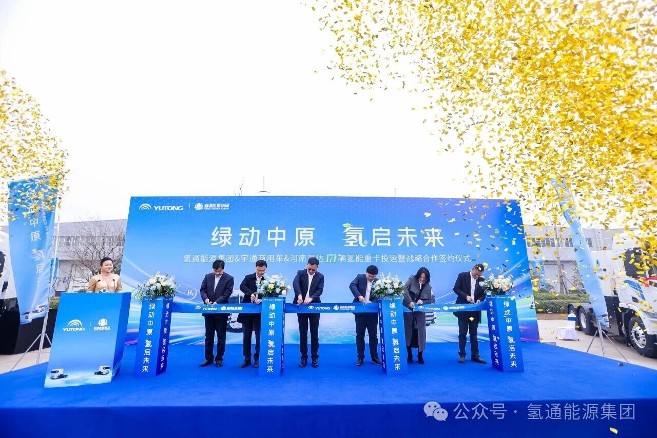 3月13日,氢通能源集团、宇通商用车与河南氢达171辆氢能重卡投运暨战略合作签约仪式在郑州隆重举行。