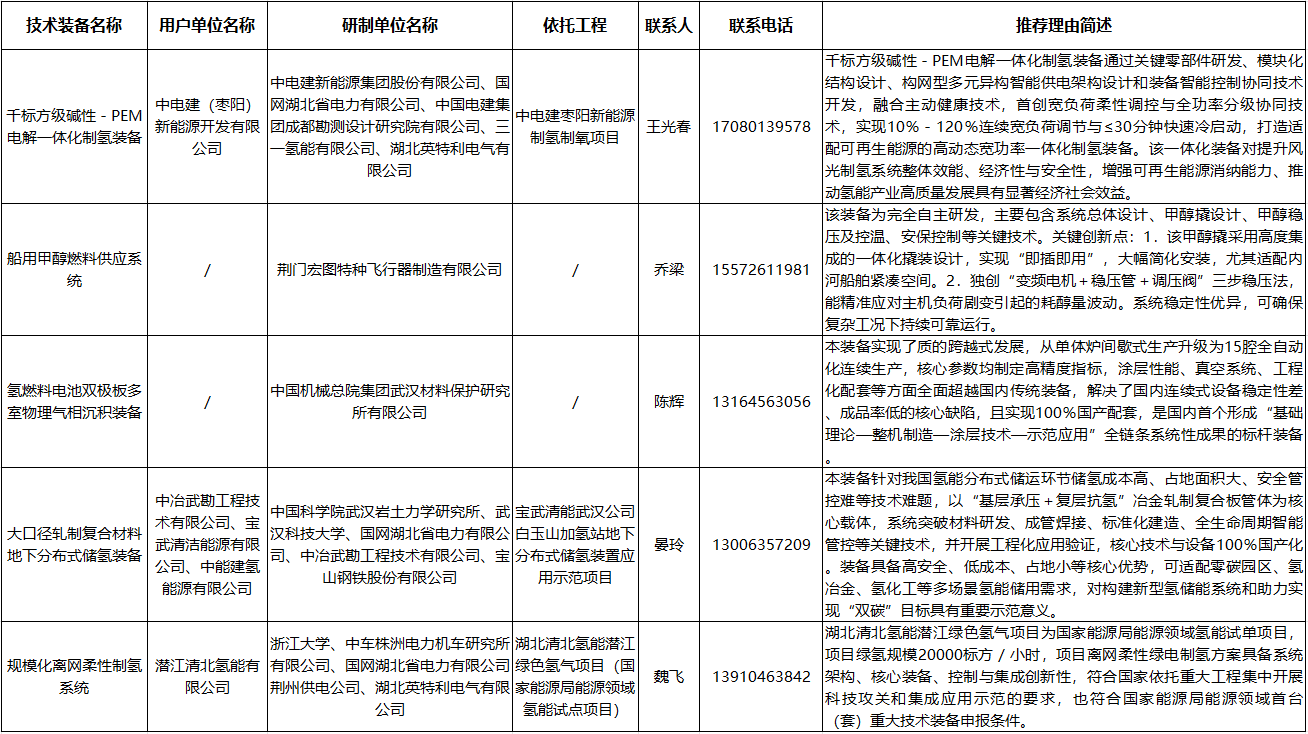 近日,湖北省能源局公示第六批能源领域首台(套) 重大技术装备申报项目。其中,氢能相关项目5项,详情如下: