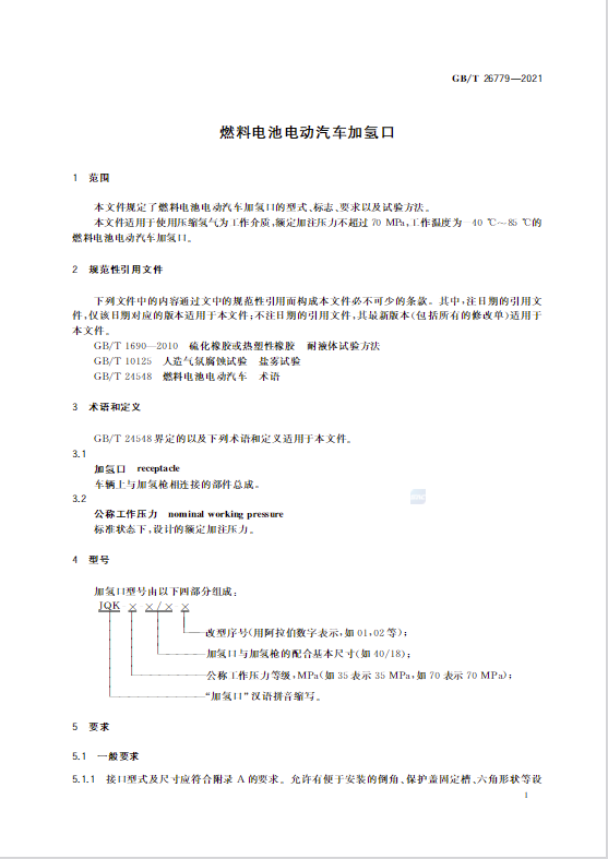近日,国家市场监督管理总局、中国国家标准化管理委员会发布最近国家标准——《燃料电池电动汽车加氢口》,标准号:GB/T 26779-2021。
