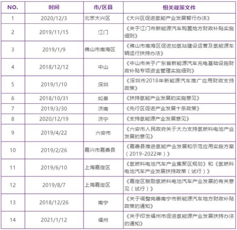 2019年3月26日,财政部等四部委发布《关于进一步完善新能源汽车推广应用财政补贴政策的通知》(财建[2019]138号),规定2019年3月26日至2019年6月25日为过渡期,过渡期内燃料电池汽车补贴退坡20%,正式期补贴政策将另行公布,并明确给予加氢站建设和运营补贴支持。